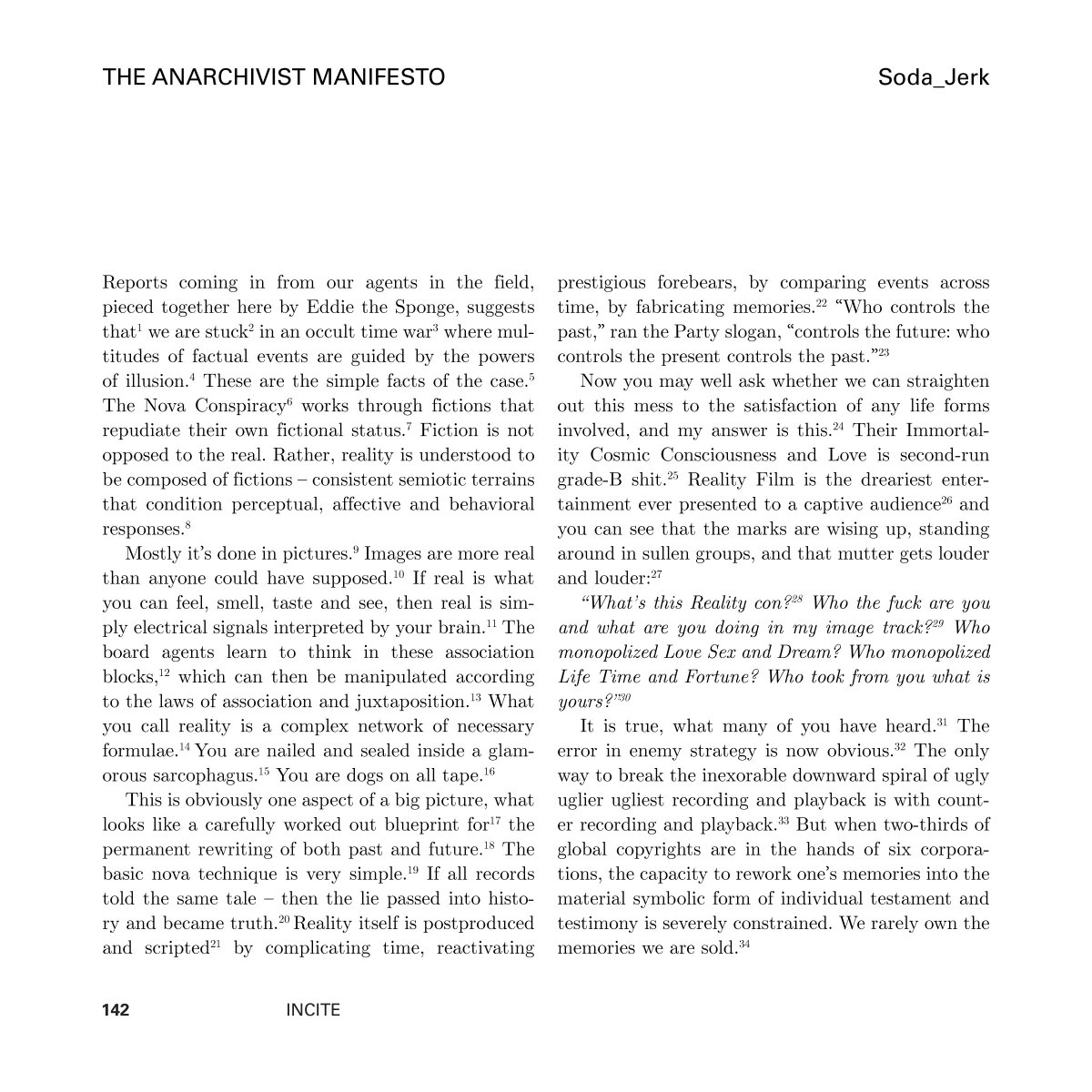 Where Hollywood Burn was a hilarious and bold protest against the restrictive grasp of copyright law in Australia and the United States, The Was is a freeing celebration of the impact of cinema and television on memory, just as The Avalanches’ music draws similar from wells of nostalgia. In INCITE, an experimental media journal, Soda_Jerk presented what they called The Anarchivist Manifesto. A found-text piece, they ended with this from artist Victor Burgin: